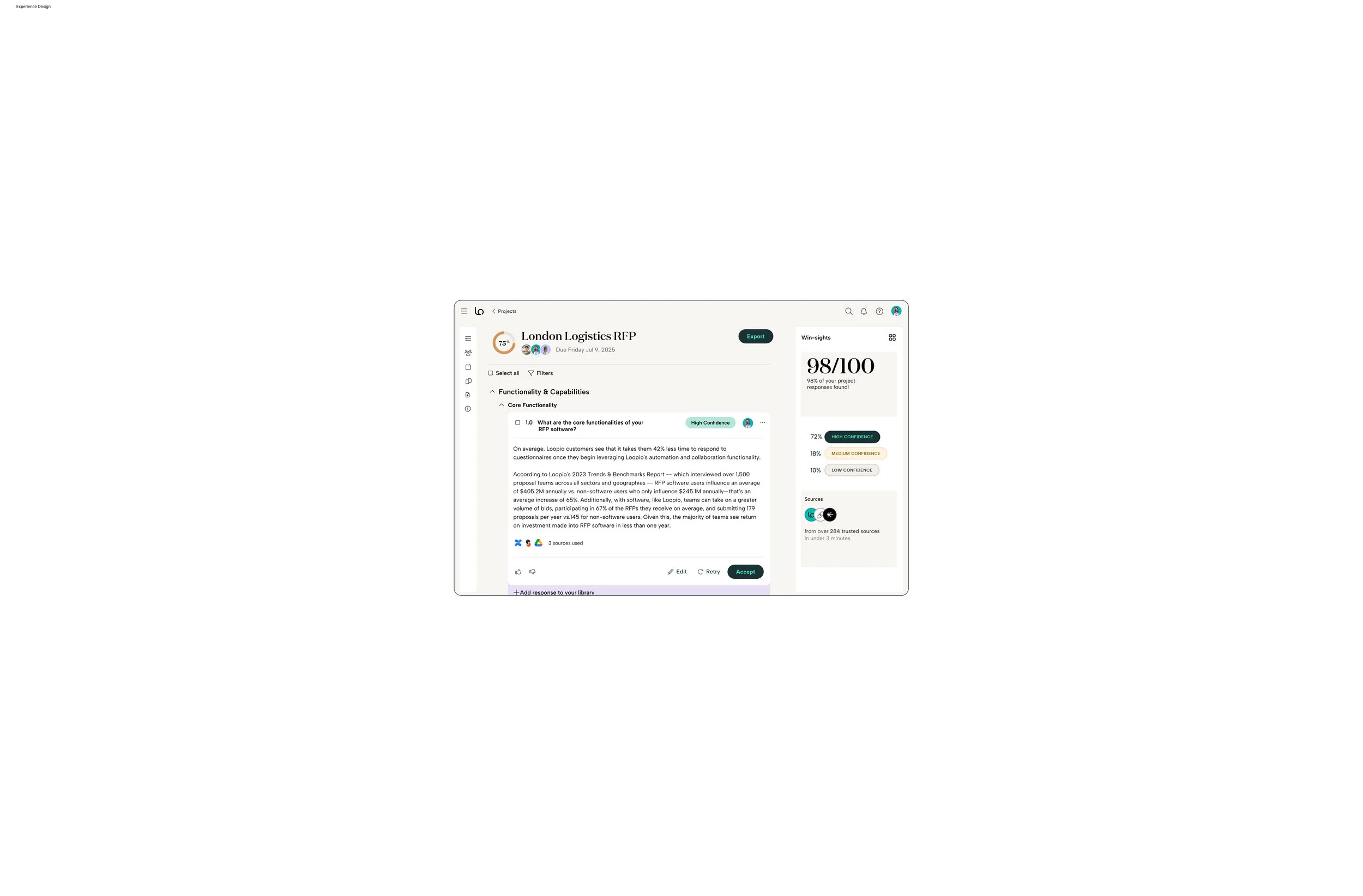 The challenge: reimagine Loopio’s authoring workflows for an AI-first future—balancing power and simplicity, and designing experiences that let AI do the heavy lifting while keeping users in control.